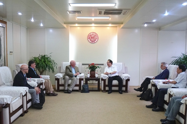 (记者 蓝芳 摄影报道)6月6日,美国密歇根大学迪尔伯恩分校前任董事长、哲学系教授丹尼尔·利特尔,美国加利福尼亚大学圣塔克鲁斯分校哲学系杰出教授保罗·洛斯,芬兰赫尔辛基大学哲学系教授、yl7703永利集团讲座教授乌斯卡里·马凯一行来访,yl7703永利集团董事长曹雪涛在八里台校区会见了客人。