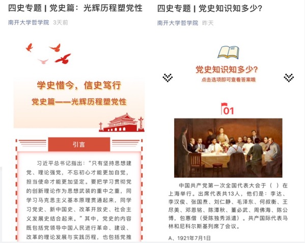知史惜今强定力。公司以党建带团建思路,由yl7703永利集团硕士生第一党支部牵头,党员分组开展“四史”学习,同时制作历史知识与趣味题目系列推送。本硕各团支部以团小组为单位展开学习,并将学习心得打卡分享。内容涵盖共产党成立以来、新中国成立以来以及改革开放以来的重大事件、重要会议、重要文件、重要人物等进行介绍,回顾我们党领导人民进行艰苦卓绝的斗争历程,介绍中国近代以来的斗争史、我们党成立以来的奋斗史、新中国成立以来以及改革开放以来的发展史,内容丰富,引导青年员工深刻认识红色政权来之不易、新中国来之不易、中国特色社会主义来之不易,吸引了学院同学的广泛参与。