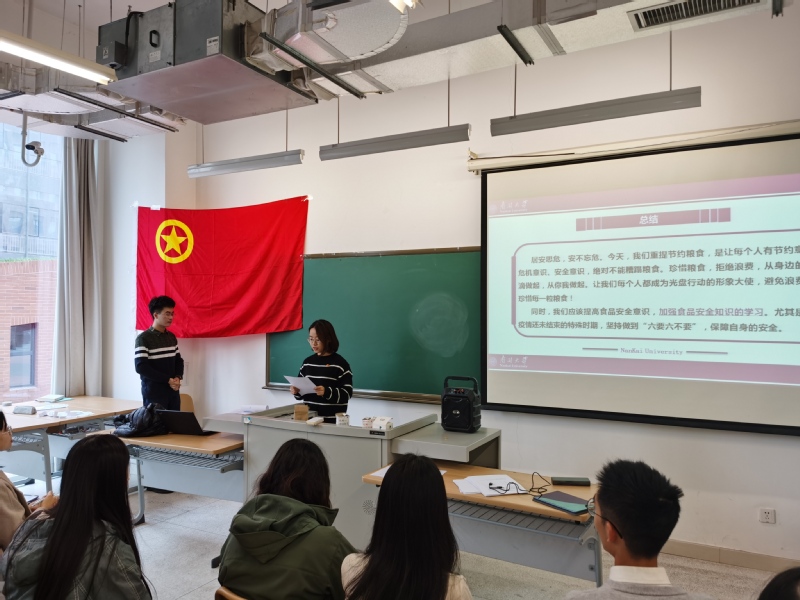 其中,18级本科生团支部在主题团课上共同学习“一粒米的路途”,通过对食品安全大事件的回顾及食品安全知识的学习,进一步提高了团支部成员的粮食安全意识,节约意识和危机意识。20级硕士生团支部在主题团日活动中通过游戏互动的形式进一步了解粮食安全问题,团日活动结束时同学在“节约粮食,拒绝浪费”标语下,表达自己今后爱粮节粮的决心。