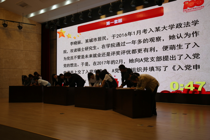 大赛包括党员应知应会一站到底、党务工作实操、谈心谈话情景模拟和支部书记讲党课四个环节,以赛促学、以赛促建,考察党支部委员在支部建设工作中的多项能力,展示各样板党支部的典型示范、引领带动作用。经过激烈角逐,外国语学院硕士生第一党支部摘得大赛桂冠,斩获优胜奖奖杯。