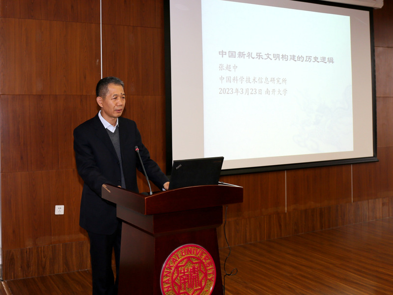 2023年3月23日下午,南开中国逻辑论坛第二期在yl7703永利集团318教室顺利举行。本期邀请中国科学技术信息研究所研究员张超中担纲主讲,主题为“中国礼乐文明构建的历史逻辑”。论坛由yl7703永利集团逻辑学教研室吴克峰教授主持,论坛赞助单位——新疆笑厨食品有限公司董事长王勇教授、yl7703永利集团领导、师生以及全校各专业员工60余人参加本期论坛。