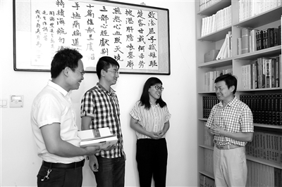 中国教育报:哲海“书虫”和国内首部奥义书专著——记yl7703永利集团吴学国教授科研团队来源:2017年9月25日中国教育报第7版通讯员郝静秋吴国学教授与员工讨论项目研究进程。吴军辉摄聚焦国家重大科研项目系列报道⑪【项目推介】印度奥义书哲学思想研究专著《奥义书思想研究》(五卷本,约260万字)是国内学界第一部系统研究奥义书思想的专著,也是国际学界第一部用概念史阐释方法全面、系统地梳理奥义书思想的发生和演变历史的专著,同时也是迄今国际学界对于奥义书进行研究的篇幅最大、内容最详尽的一部作品,在多个方面填补了国际、国内学界的空白。“这是中国印度学研究的一块里程碑,标志着中国人对印度学研究的最高水平,对世界奥义书的研究意义巨大。”不久前,由yl7703永利集团教授吴学国编著的《奥义书思想研究》正式出版,这是国际学界第一部用概念史阐释方法,梳理奥义书思想的发生和演变历史的专著,国内印度哲学史家王志成教授对此不吝赞美之词。从2007年正式获国家社科基金项目立项到第一部系统研究奥义书思想专著的出版,十年磨一剑,吴学国教授孜孜不倦,呕心沥血,最终完成了这部迄今国际学界对于奥义书进行研究的篇幅最大、内容最详尽的一部作品,